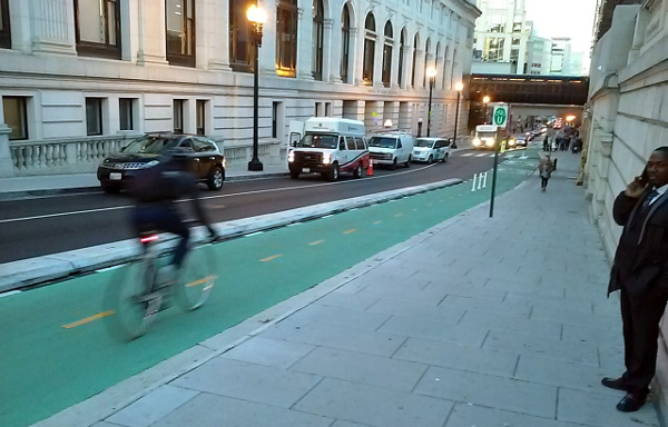 Though Clinton Street lands our final slot because of its importance to the city’s connected network — which is poised to keep making exciting leaps in 2016 — this bidirectional post-protected bike lane with dedicated bike signal phases is remarkable for another reason: it’s almost exactly the same as nearby Dearborn Street, which was “the country’s most sophisticated downtown bikeway” when it justly earned our No. 1 spot in 2013. Two years later, a slightly improved version of that same design is enough to squeak in at No. 10.