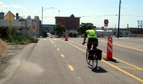Pueblo, population 108,249, hasn’t ridden the same economic rebound as Denver, which sits 115 miles to its north. “They are a rust belt type of community that is adapting to the modern economy with a new seven-block cycle track in their downtown,” said Carlos Hernandez, a consultant who worked on Fifth Street’s protected bike lane. For a bargain-basement $5,500 per block, Pueblo planned and built a downtown centerpiece for its new 20-mile network of buffered bike lanes, winning over a major business skeptic, nearly eliminating sidewalk biking and inspiring a monthly “taco tour” ride to restaurants along its length.