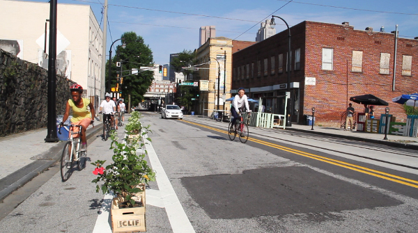 From small-town Kansas to the middle of Atlanta, communities (many of them inspired by last summer’s successful $600 demo project in Minneapolis) have been using handmade barriers and relatively tiny amounts of money to put together temporary bikeways that spread the knowledge of the concept among the public and officials.