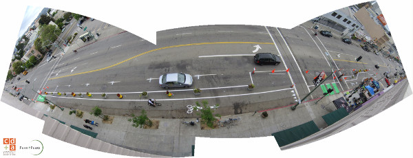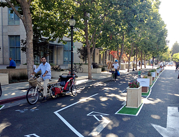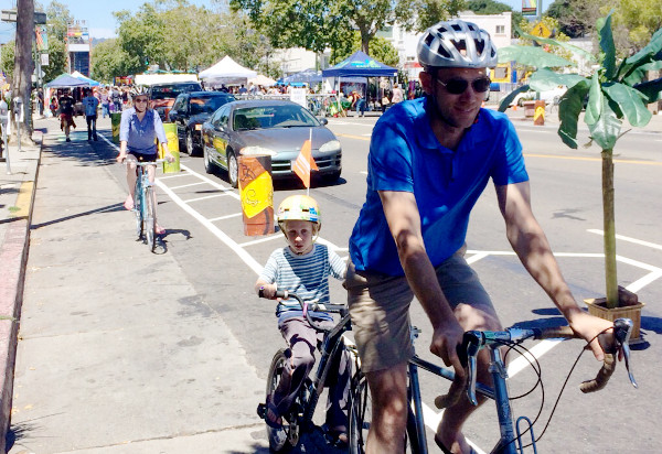 “Every traffic engineer who touches a street in Oakland, they were all out on their bikes checking it out,” said Dave Campbell of East Bay Bike Coalition, who led the creation of maybe the year’s most beautiful demo on Telegraph Avenue there. (Click to enlarge — it’s worth it.)