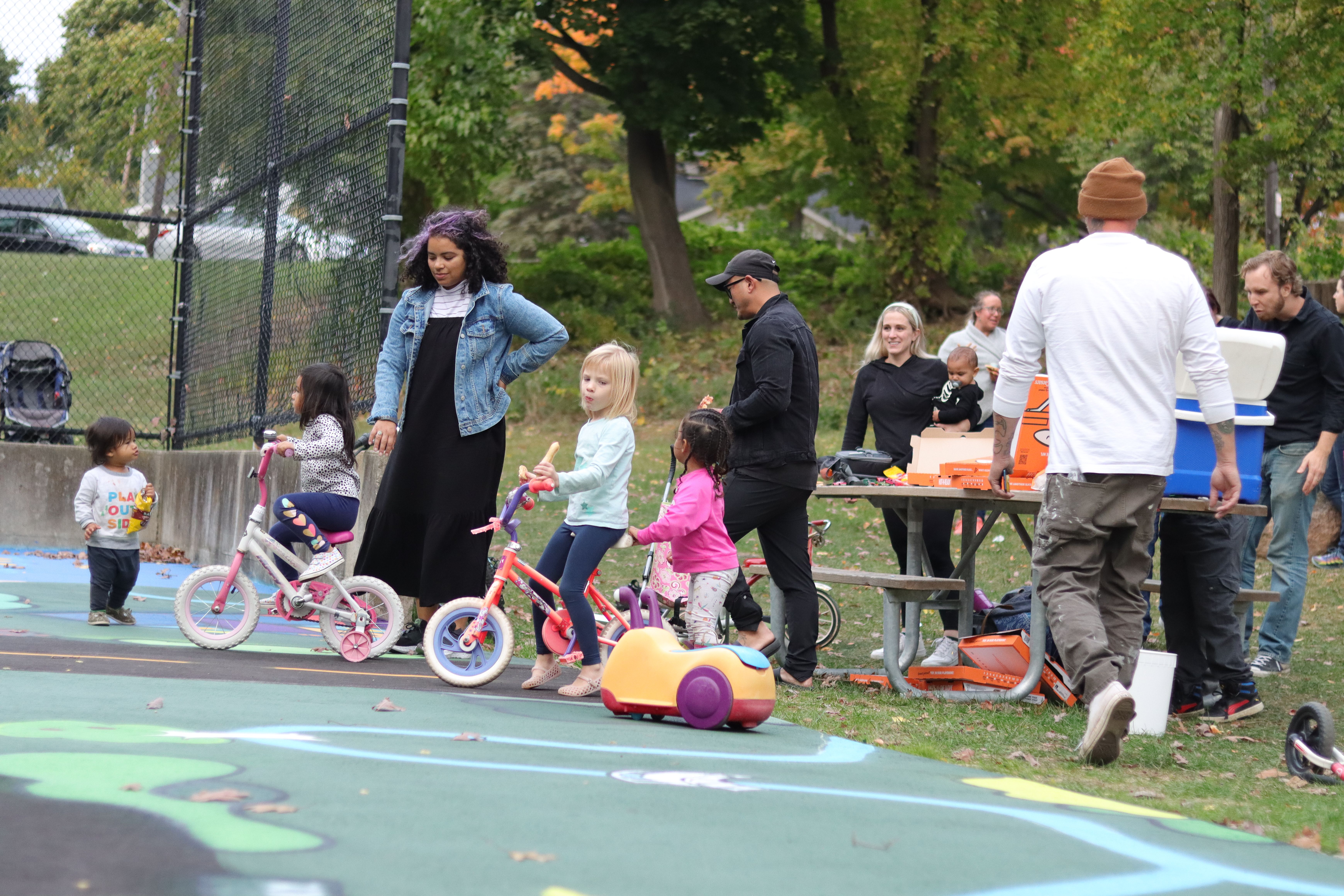 To ensure it was long-lasting, the park required new asphalt and paint that could withstand all seasons of weather. A local asphalt company resurfaced the tennis court in late summer before Cobley and an assistant came in and beautified it. The bike park had its grand opening on October 18, 2022, with the mayor and Mott Park’s local councilperson in attendance. While the fall weather meant that the court will likely not be used to its fullest until the upcoming spring and summer, the neighborhood kids already love it.