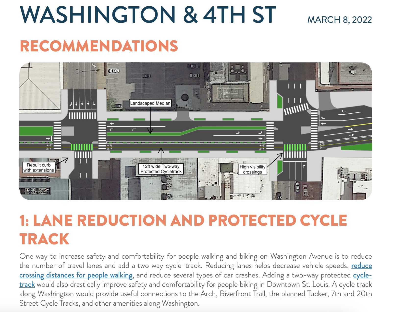 “Our first two Crash Reports also included a section where we highlighted high-level solutions that could be used to lower crashes,” says McCrory, naming things like lowering speed limits, using road diets, and building protected infrastructure. With two reports under its belt, Trailnet secured a 2022 Community Grant from PeopleForBikes to create a third Crash Report, which highlighted more specific, local solutions. Trailnet was then able to use the report as an advocacy tool to accelerate the installation of safe mobility networks throughout St. Louis.