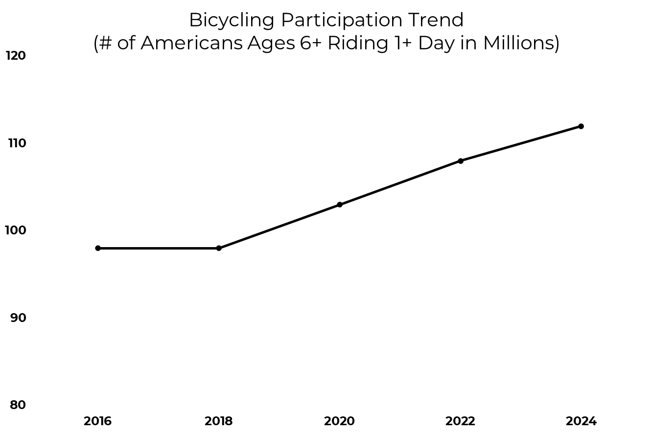 Participation reflects the number of Americans ages 6 and older who report riding a bicycle at least one day in the past 12 months.
